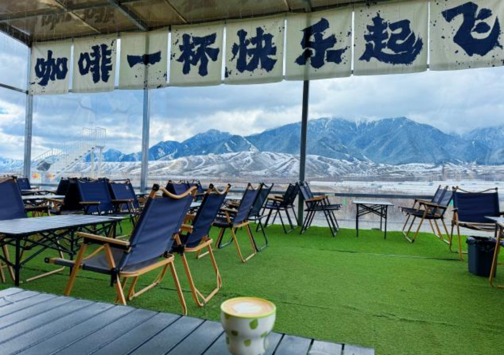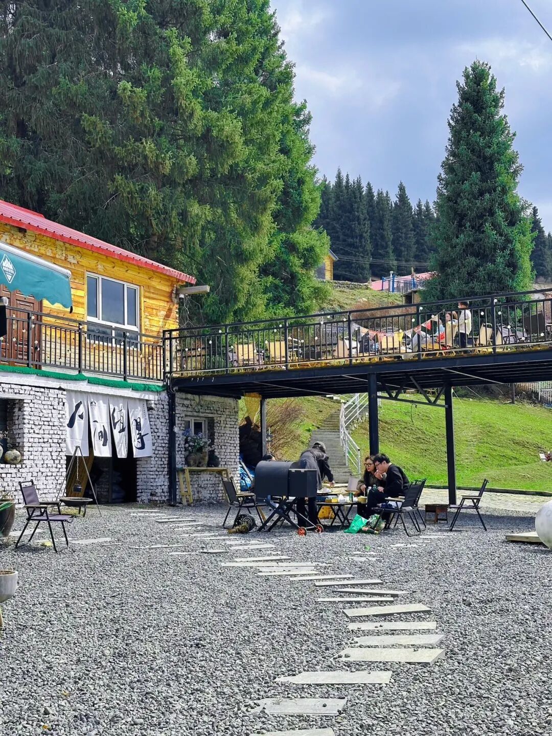 从营地抬眼就能看到丝绸之路海外滑雪度假区,是观赏南山山景的绝佳位置。