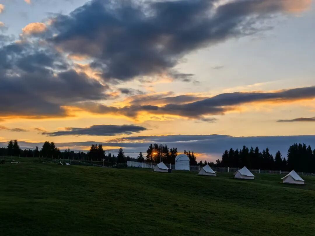 觅境·星空营地位于乌鲁木王人县菊花台景区内,在南山天文不雅测站旁,面向景区的空中草原和雪峰云杉林。