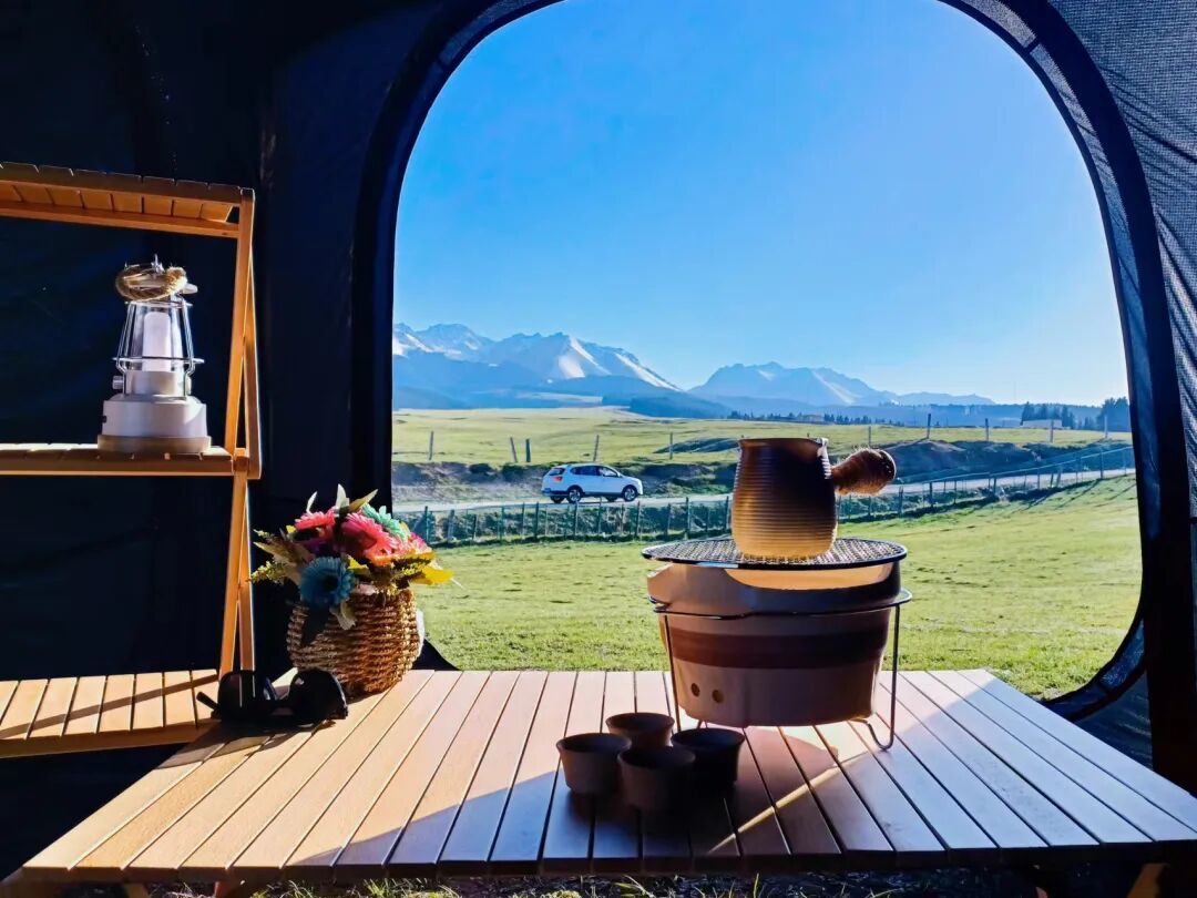 这里有18个营位,带上好热情,穿得好意思好意思的,就能潇洒露营,拎包入住。一个东谈主也可以来,独坐在旯旮里听歌、看景、喝茶,被当然景不雅环绕,看途经的牛羊,不会被惊扰,i东谈主的露营胜地。