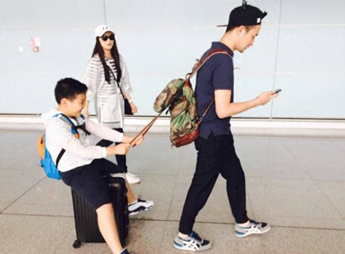 从王艳晒出的相片来看,球球与这位男士联系很亲近,两张相片球球王人是坐在皮箱上俏皮地拽着前边男士的书包带,王艳走在一旁,歪头看向男儿的她目光颠倒宠溺。